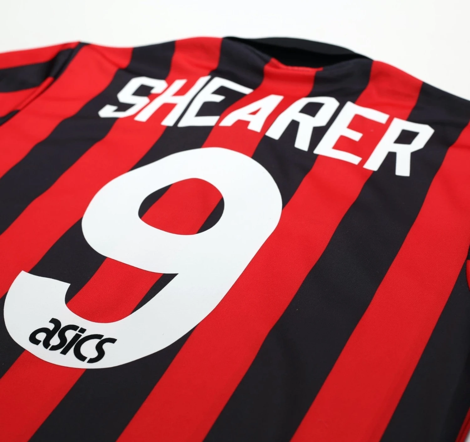 Vintage Asics away shirt as worn during Rovers first season back in the top flight since the 60’s. Official flock printing for superstar striker Alan Shearer #9 to the rear.