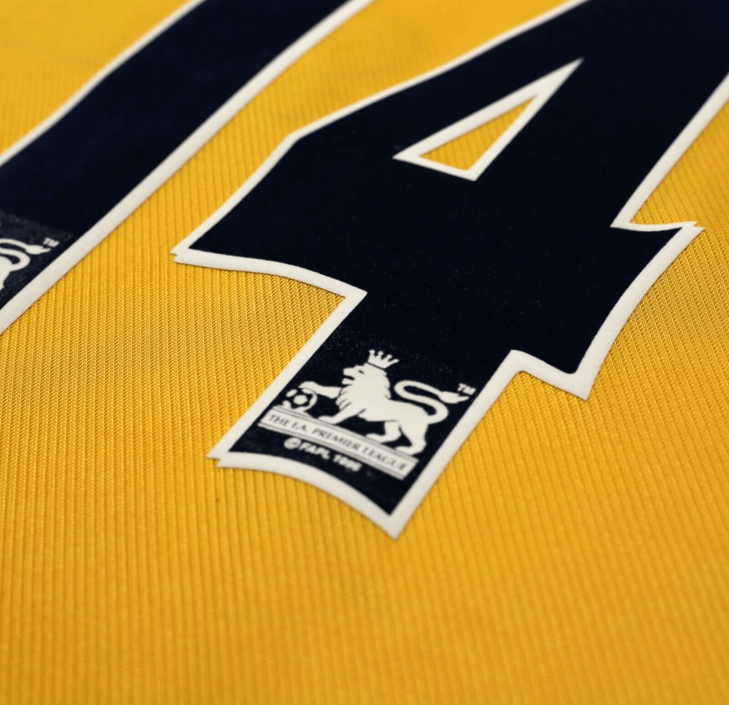 Official Premier League navy flock printing (not lextra) for classy French winger David Ginola #14.