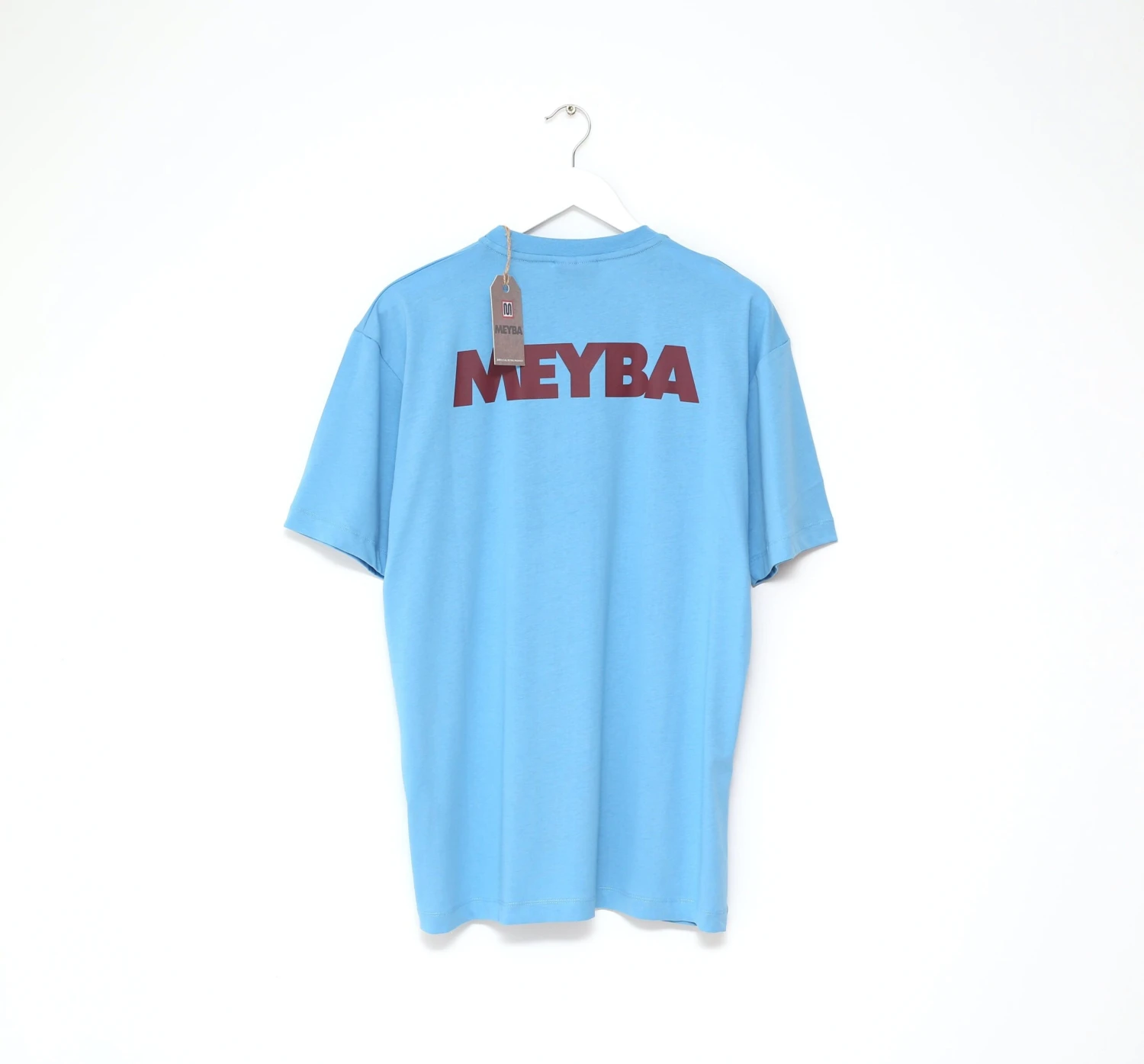 Light blue training tee made by Meyba available in all sizes. Shirt is light blue with dark blue and red sponsor (Barcelona colours) on the front and back and a clean material.